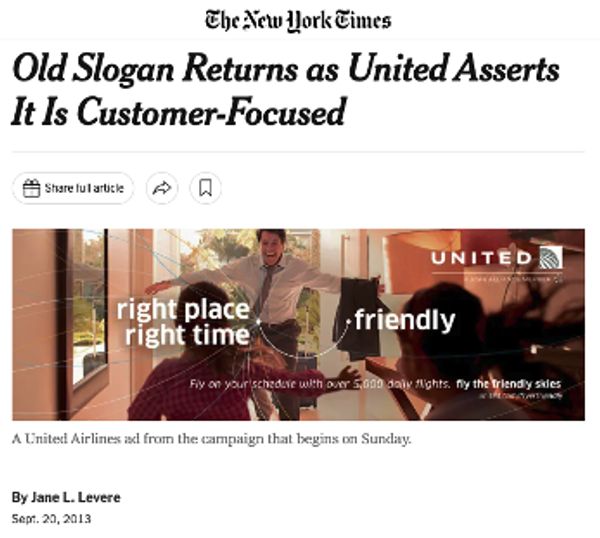 In summer 2013, the airline planned to resurrect the iconic Fly the Friendly Skies tagline, but its operational and service performance lagged.